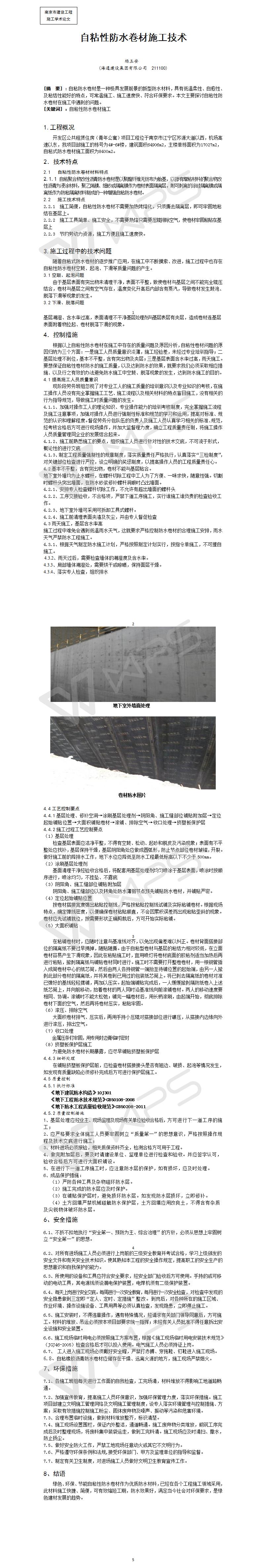 自粘性防水卷材施工技術(shù)
