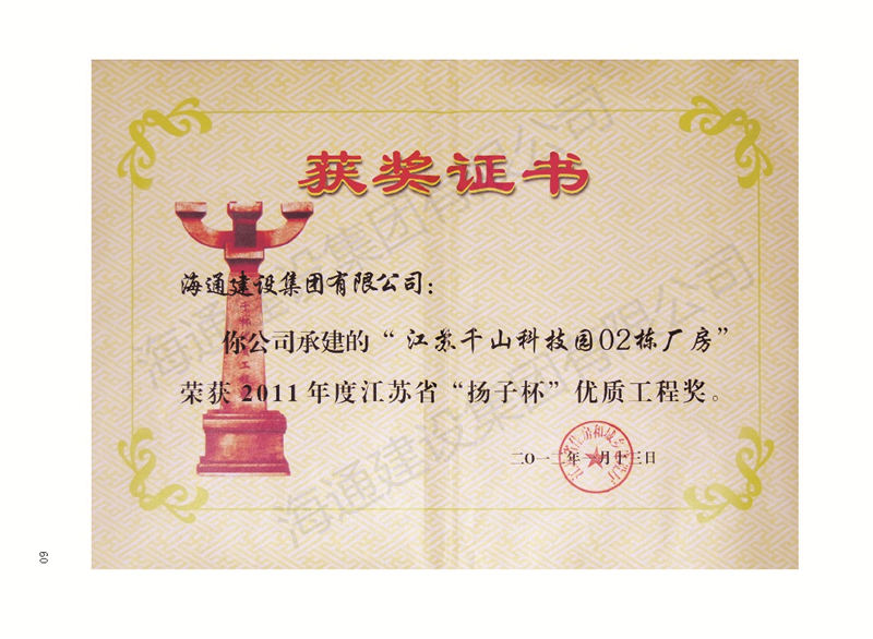 揚(yáng)子杯2012江蘇千山科技園02棟廠房