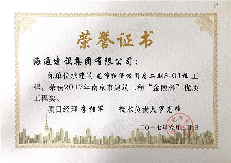南京市金陵杯2017龍?zhí)督?jīng)濟適用房二期3-01棟
