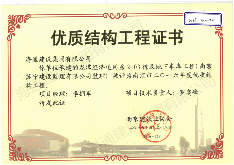 南京市優(yōu)質(zhì)結(jié)構(gòu)2016龍?zhí)督?jīng)適房2-03棟及地下車庫