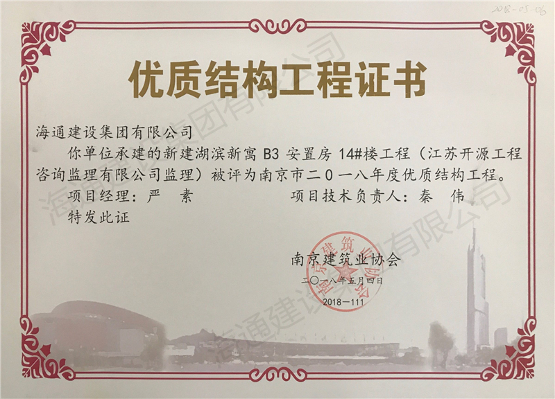 南京市優(yōu)質(zhì)結(jié)構(gòu)2018-新建湖濱新寓B3安置房14#樓工程