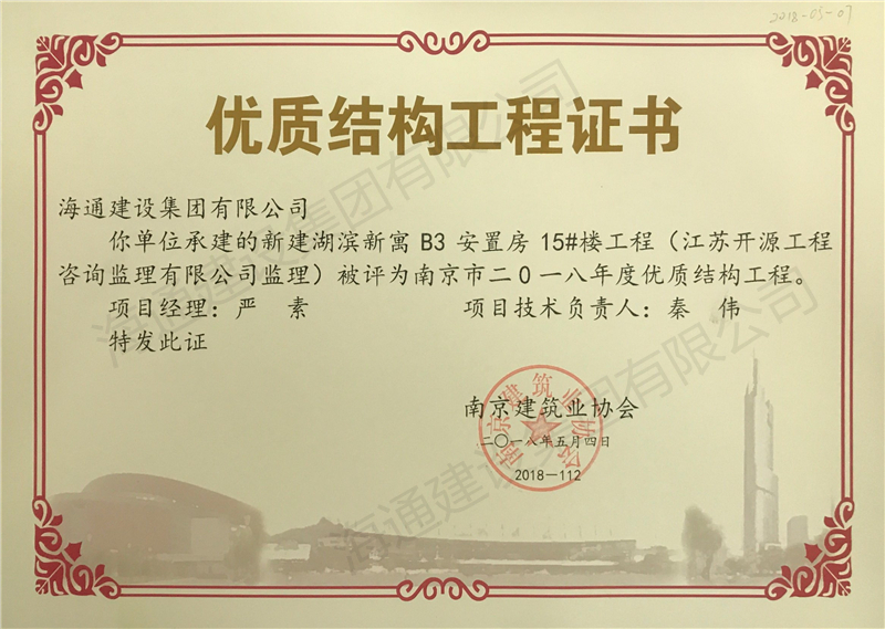 南京市優(yōu)質(zhì)結(jié)構(gòu)2018-新建湖濱新寓B3安置房16#樓工程