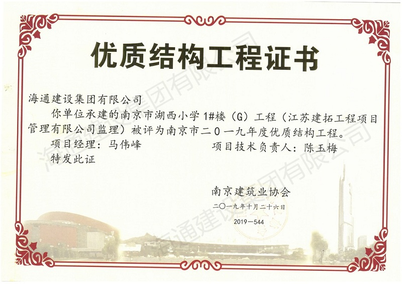 南京市優(yōu)質(zhì)結(jié)構(gòu)2019南京市湖西小學(xué)1#樓(G)工程