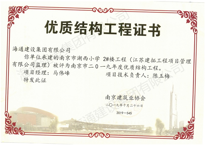 南京市優(yōu)質(zhì)結(jié)構(gòu)2019南京市湖西小學(xué)2#樓工程