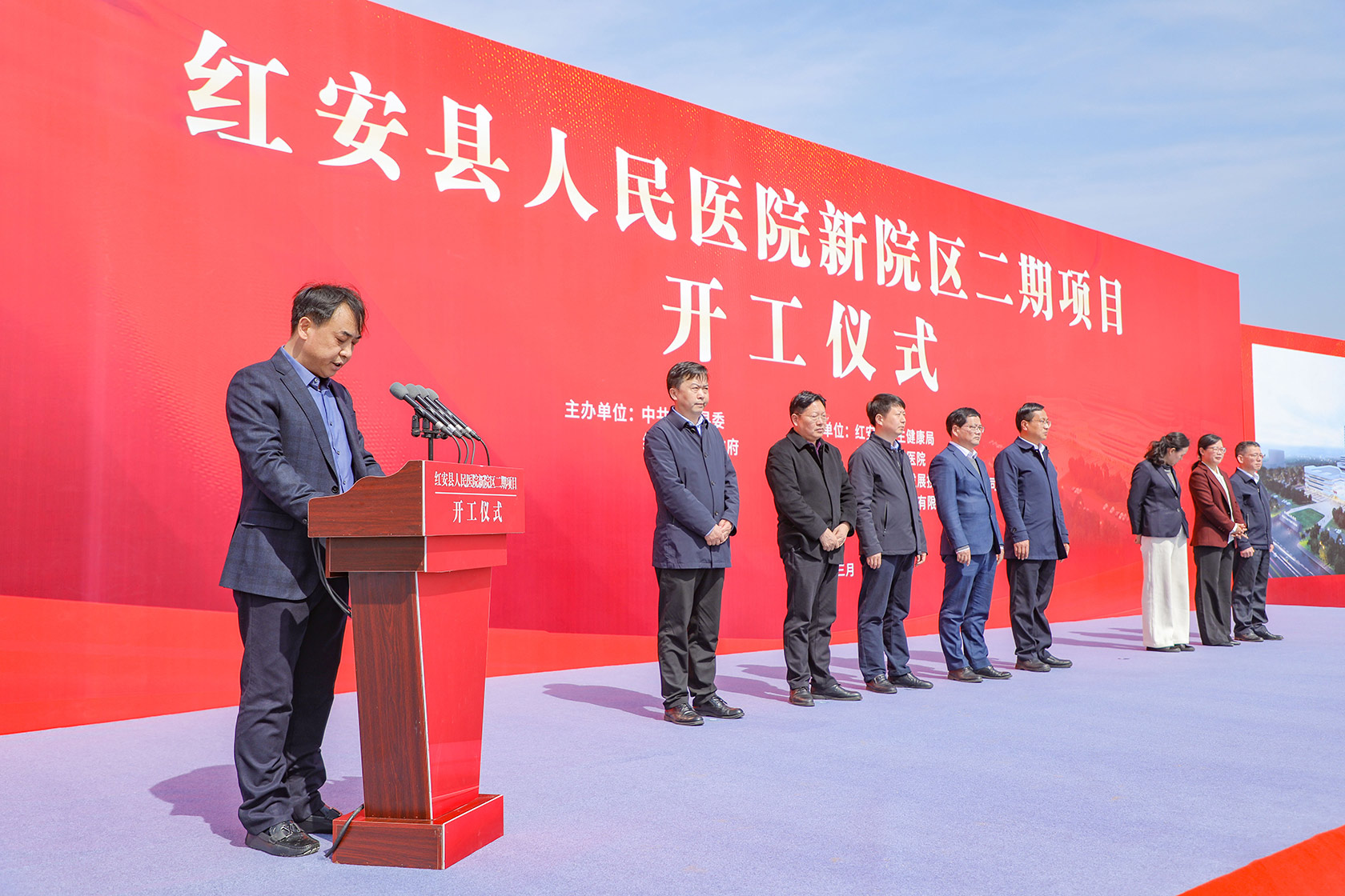 3月6日,由海通集團承建的紅安縣人民醫(yī)院新院區(qū)二期工程開工儀式在新院區(qū)建設現(xiàn)場隆重舉行,二期工程建設的成功啟動,標志著“健康紅安”戰(zhàn)略又邁出了堅實的一大步。紅安縣委常委、書記劉堂軍出席儀式并宣布項目開工,縣委常委、宣傳部長、總工會主席熊孟元致辭,縣委副書記、政法委書記王映輝主持儀式。發(fā)改局、住建局、衛(wèi)建局、人民醫(yī)院干部代表、城投集團等單位負責人和項目施工單位、監(jiān)理單位等人員參加活動。海通建設集團董事長任德華代表施工單位作表態(tài)發(fā)言。